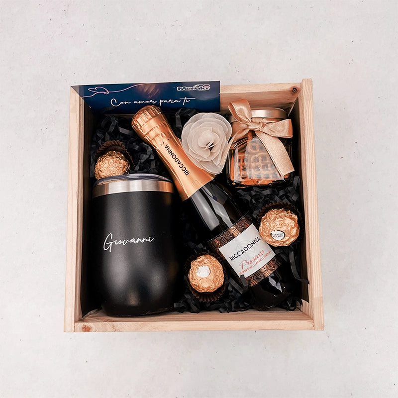 Celebra un momento inolvidable con nuestro ¨Box Dorado”, un detalle sofisticado que combina brindis, dulzura y estilo para reconocer el esfuerzo y éxito de una nueva etapa o tu persona especial.