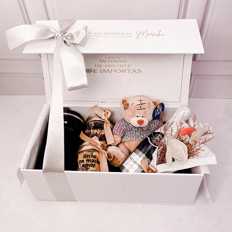 Brinda distinción con nuestro Box Brindis Élite, un detalle elegante y sofisticado diseñado para celebrar el esfuerzo, la dedicación y el éxito alcanzado.