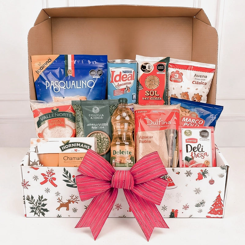 Hemos seleccionado los clásicos de siempre para crear el detalle perfecto: un Panetón Pasqualino suave y esponjoso, acompañado de los ingredientes esenciales para preparar una taza de chocolate cremosa y reconfortante.