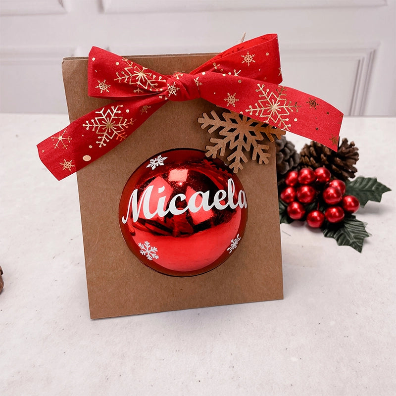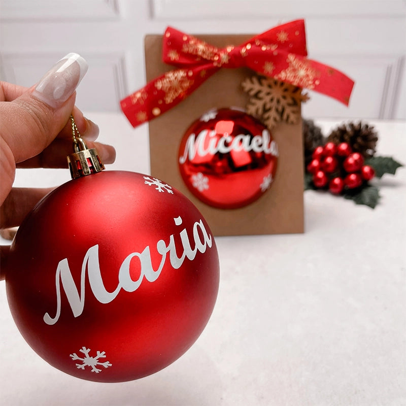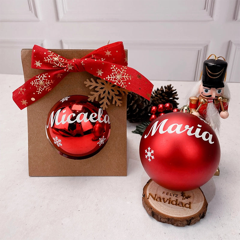 - Esfera color rojo de 9 cm personalizado con nombre en vinil.