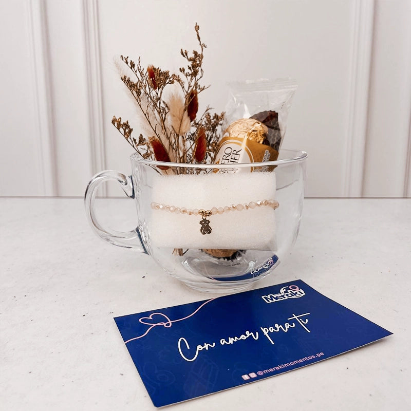 Un detalle luminoso y delicado que combina elegancia, dulzura y un toque dorado. Un regalo perfecto para sorprender con encanto y hacer brillar cualquier momento especial.